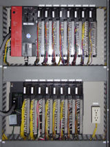 左の写真が改造前、右の写真が改造後です。写真を見ると更新の容易さ、更新時間の短縮が図られていることが解っていただけると思います。改造後の上段IOユニットの右にあるのは