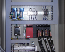 今回は右側に空きスペースがありましたので、ここにQシリーズを置きました。勿論、前もってそれらを組み込んだユニットを準備しました。現場では取付穴のタップ作業と既設端子台の
