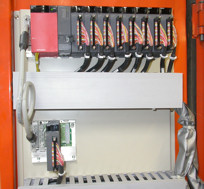 今回は右下に空きスペースがありましたので、ここにQシリーズを置きました。Aシリーズの入力は珍しくAC100Vでしたので、AC100Vをオープンコレクタに変換するユニットを